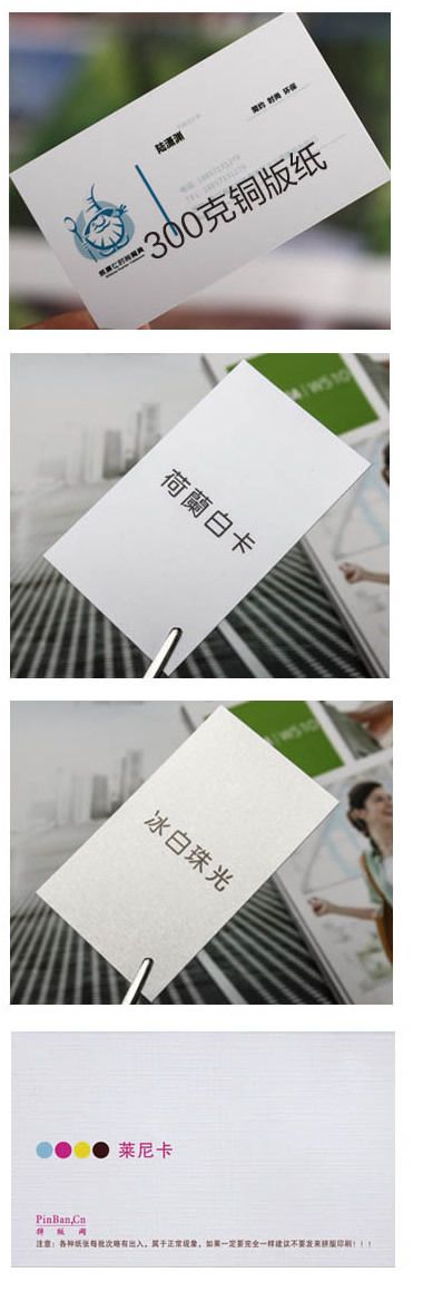 銅版紙名片的特點在于紙面非常光潔平整,平滑度高,光澤度好,是市場上名片的常用紙張,一般市面上85%都是300克銅版紙名片,不但價優(yōu)且質(zhì)量好。它除了紙面平整、白度高外,還使印出的圖形、畫面具有立體感,因而銅版紙廣泛地用來印 刷畫報畫冊、名片、風(fēng)景畫、精美掛歷、人物攝影圖等,銅版紙是印刷廠主要使用的紙張之一,也是目市場上多的名片使用紙張。 |